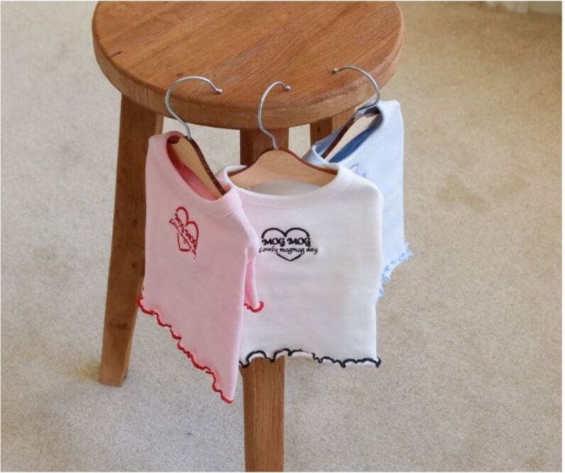 30番手フライス生地で伸縮性と厚みがあり、夏を除いた春、秋、冬に着用可能で、刺繍ポイントと裾の裾上げ加工で一段とラブリーなデザインです!