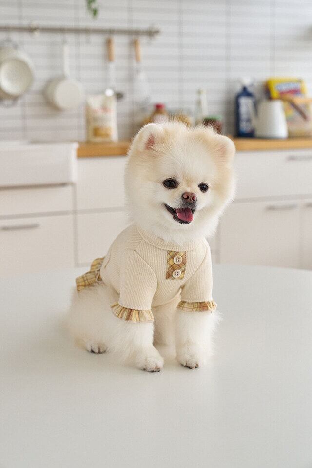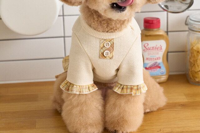 即納【Ma belle fifi】ふわふわチェックニットトップ クリーム