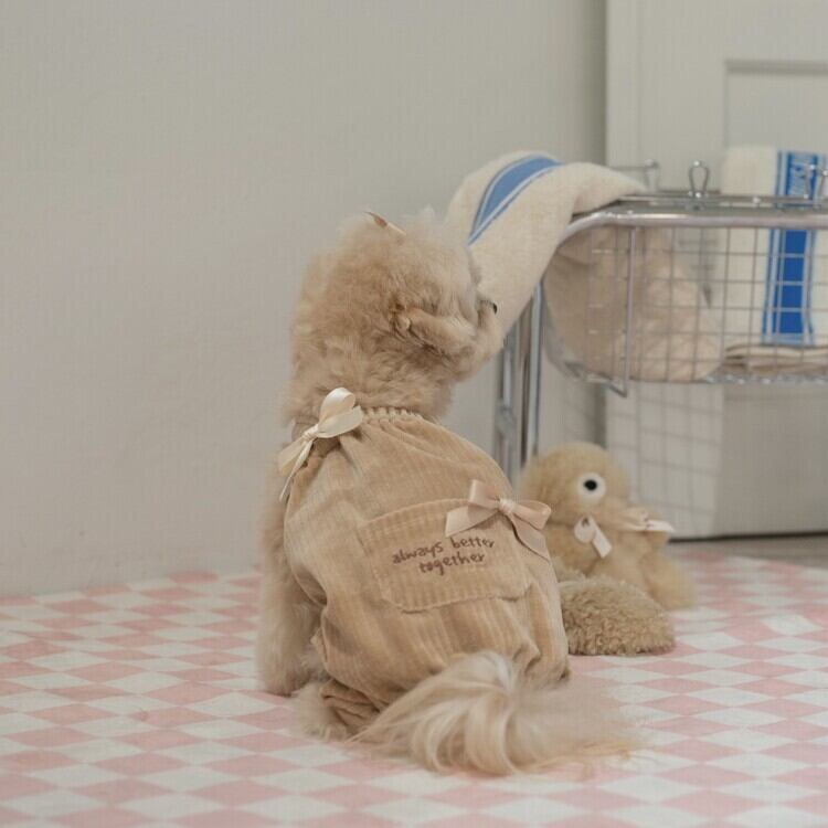 即納【cheese n mood】ベロアロンパース (ベージュ)