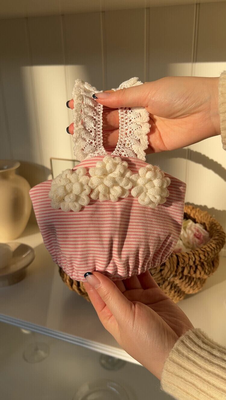 肩ひもも柔らかい素材を選んでかわいい感じを加えましたꕤ*.゚