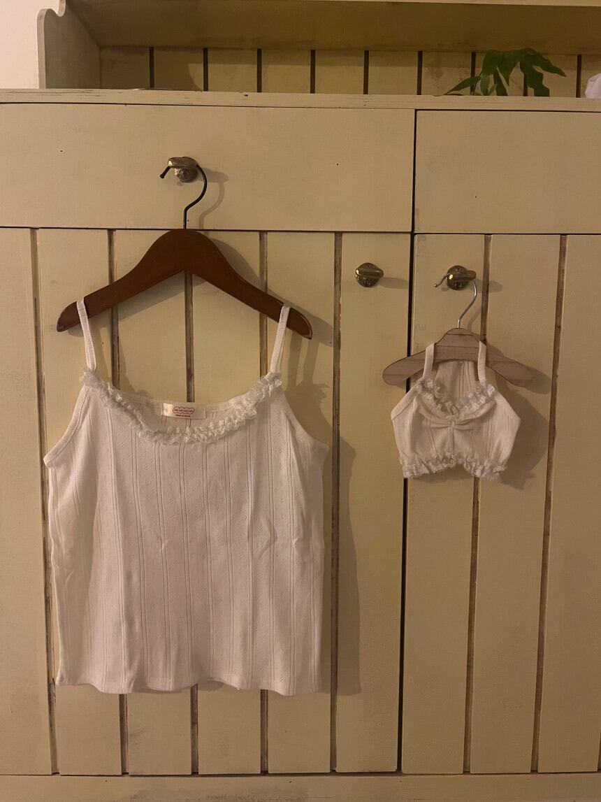 きれいな甘めの宿に行ってホームウェアとして着るべきルック....上品なレースがポイント。