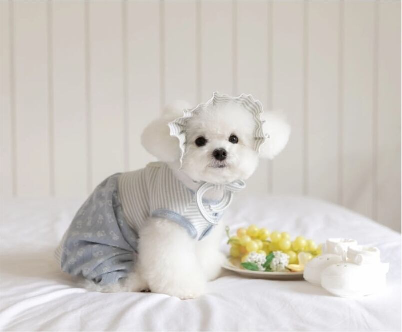 見るからにふわふわとしたボーダー柄にさらっとした肌触り、抜群の伸縮性でどこへでも気軽に着用でき、デリケートなお肌のワンちゃんも安心して着られます。